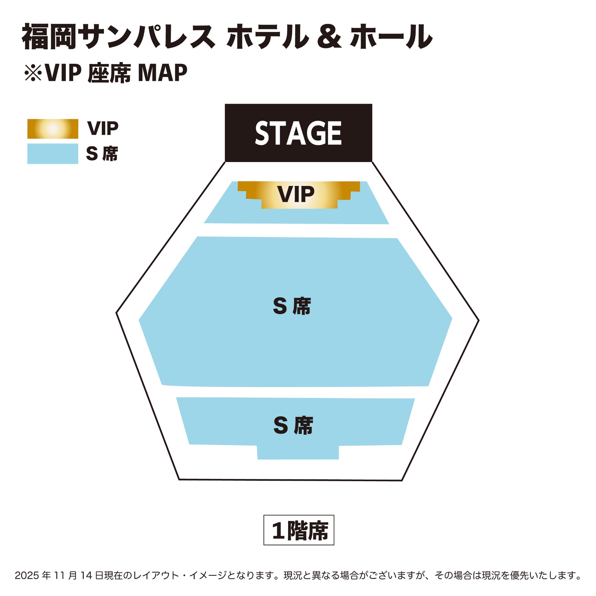 1~7列目以内の座席確約・指定席 *座席は抽選にて決定いたします。座席位置は「座席イメージ」をご覧ください。